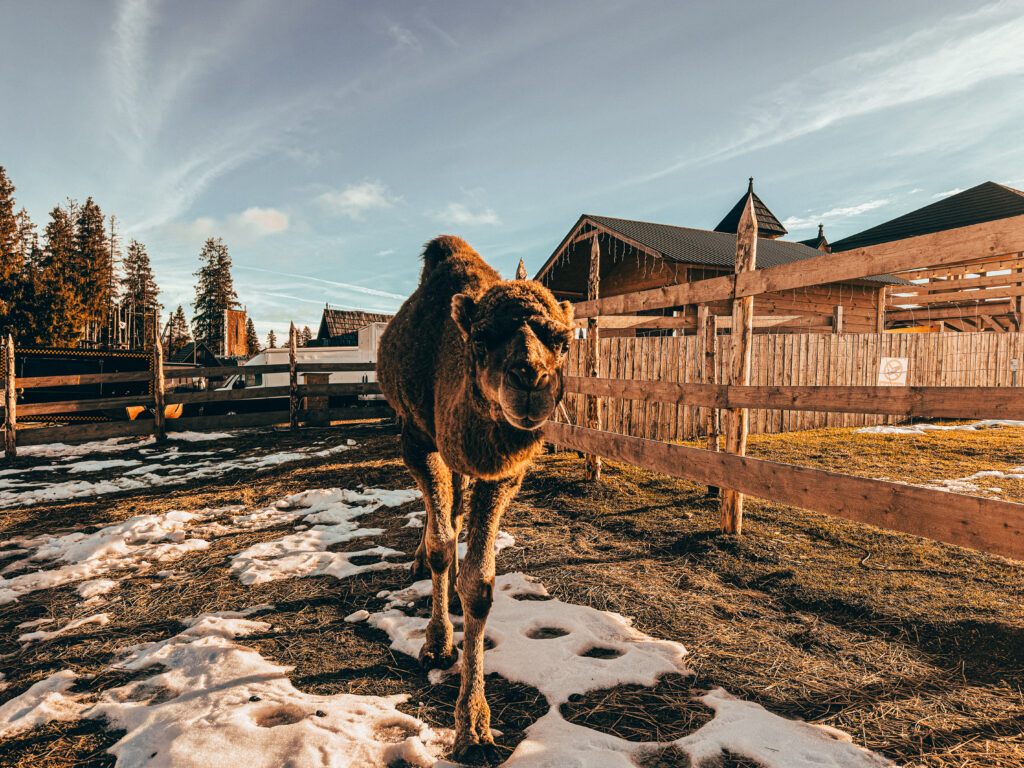 Wielbłąd jednogarbny to zwierzę, które rzadko można zobaczyć z tak bliska – u nas możliwy jest bezpośredni kontakt oraz karmienie pod nadzorem obsługi.