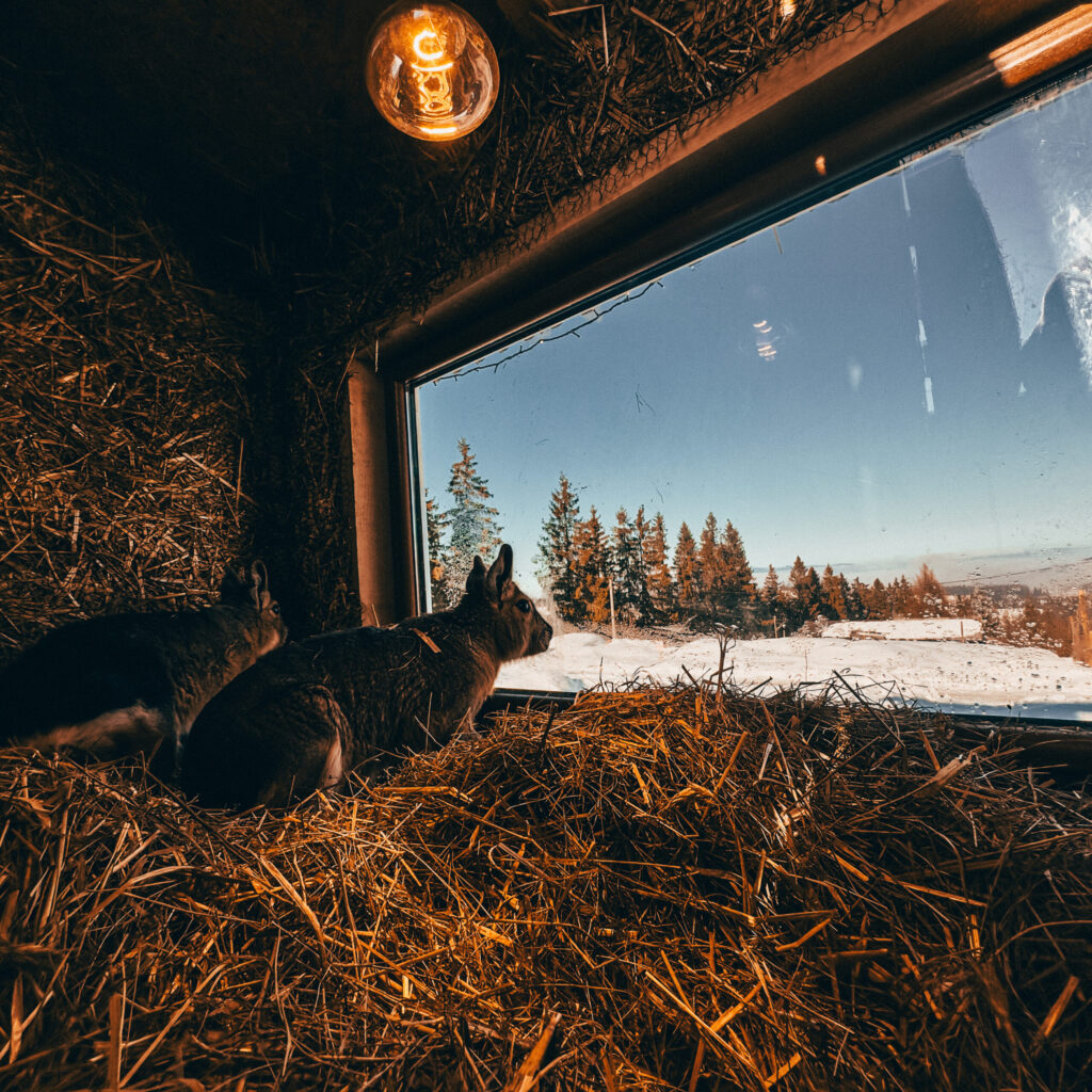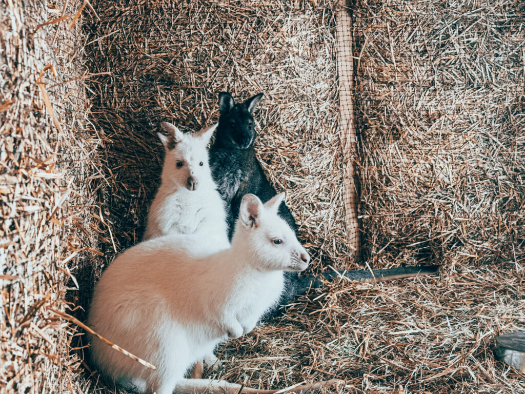 W naszym Mini ZOO znajdują się kangury walabia, w tym dwa osobniki albinotyczne z czerwonymi oczami. To rzadko spotykana odmiana, która budzi ogromne zainteresowanie odwiedzających.